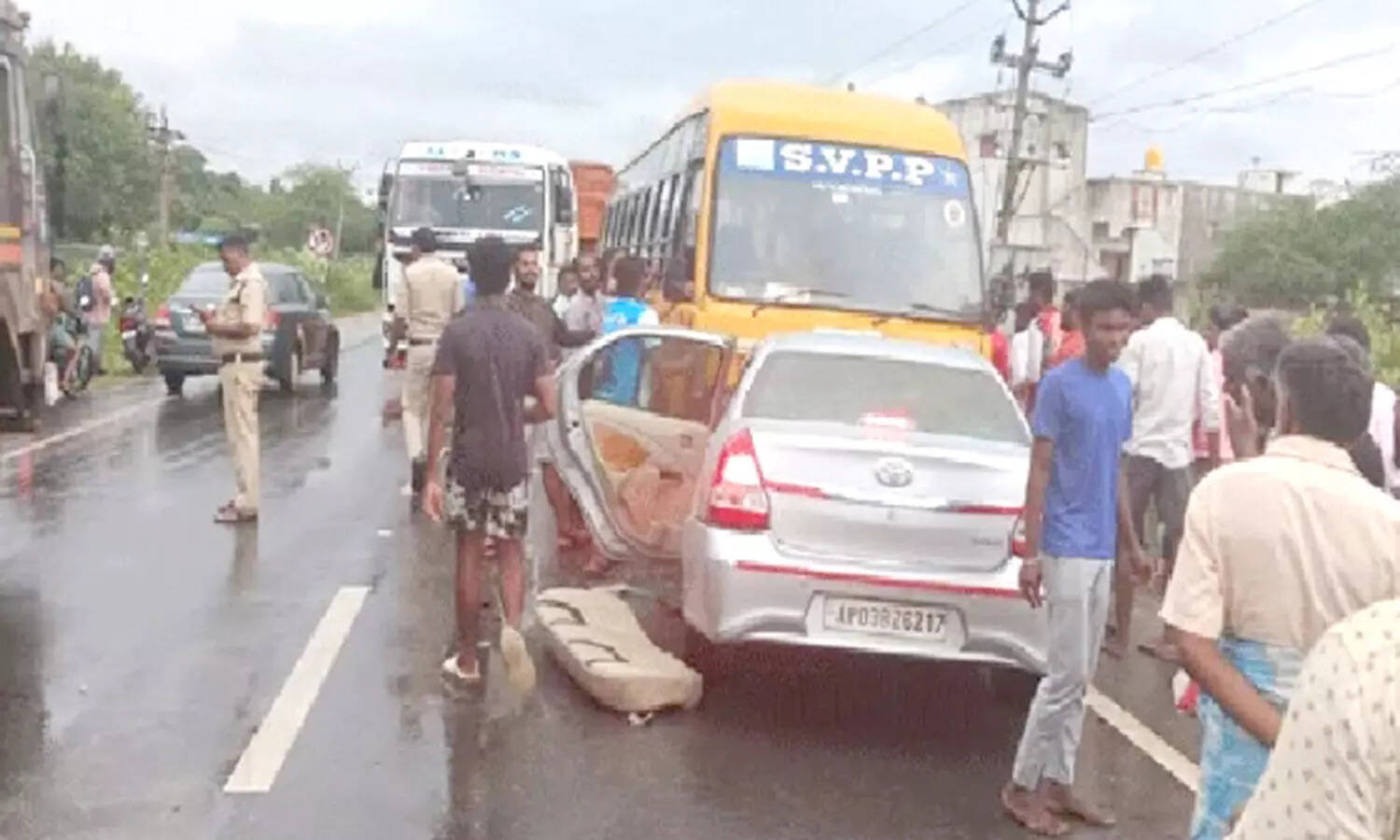 நிகழ்ச்சி முடிந்து மாலை காரில் மீண்டும் ஊருக்கு புறப்பட்டு வந்து கொண்டு இருந்தனர். கார் சென்னை - திருப்பதி தேசிய நெடுஞ்சாலையில் நாராயணவனம் அடுத்த சமுதாயம் என்ற இடத்தில் வந்தது. அப்போது எதிர்பாராத விதமாக எதிரே வந்த தனியார் என்ஜினீயரிங் கல்லூரி பேருந்தும், காரும் நேருக்கு நேர் மோதிக்கொண்டன.
