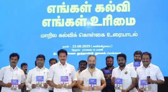 திமுக் மாணவர் அணி சார்பில் சென்னை அண்ணா நூற்றாண்டு நூலக அரங்கத்தில் எங்கள் கல்வி எங்கள் உரிமை' என்ற தலைப்பில் மாநில கல்விக் கொள்கை உரையாடல் நிகழ்ச்சி நடைபெற்றது. இதில் பங்கேற்று உரையாற்றினார் மக்கள் நீதி மய்யம் கட்சியின் தலைவர் கமல் ஹாசன் எம்.பி. விழாவில் பள்ளிக் கல்வி அமைச்சர் அமைச்சர் அன்பில் மகேஷ, திமுக மாணவரணித் தலைவர் ராஜீவ்காந்தி கலந்து கொண்டனர்